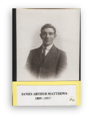 Her son ‘Jim’, enlisted in 1915, and was called up for active service in ‘The Great War’ in January 1917. From then until his eventual death at the Front in August 1917, he wrote frequently to his mother. Mrs Matthews cherished this correspondence and about 50 cards and letters survive to this day, many in their original envelopes.